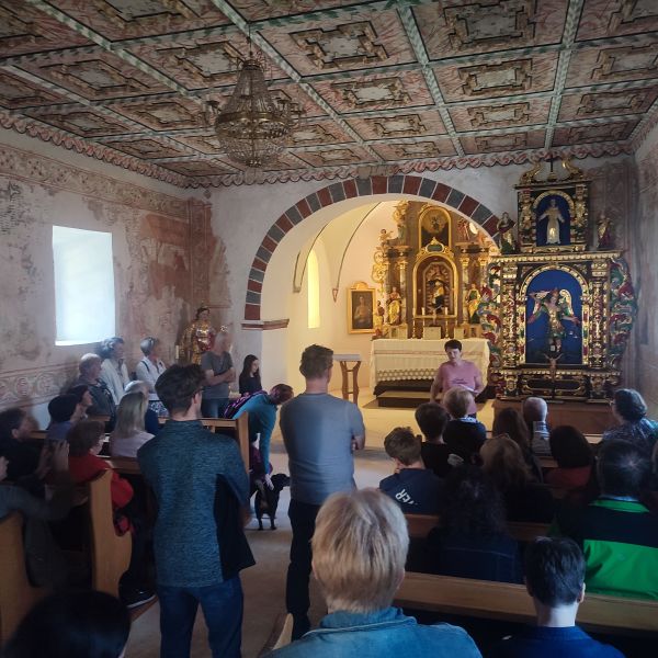 Naša prva postaja je bila majhna vasica Lopata v občini Žužemberk, ki je strnjeno naselje z okrog 80 prebivalci in čudovito cerkvico sv. Neže. Njeno zgodovinsko vrednost dokazujejo njeni detajli, ki skupaj z neposredno okolico in vasjo sestavljajo pomembno celoto.