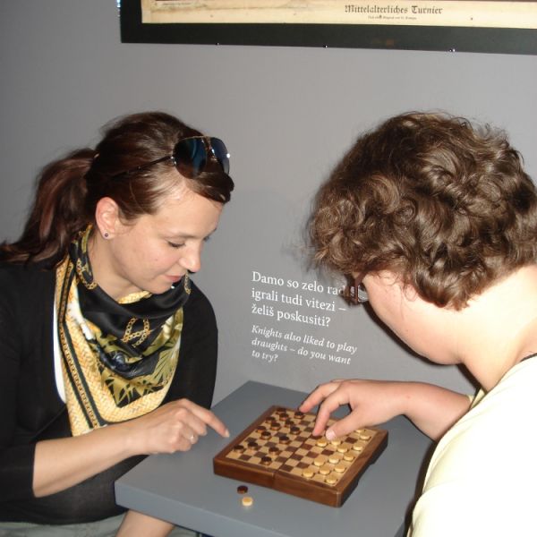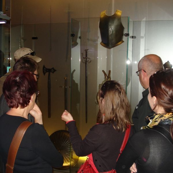 Ogled razstave Vitez, dama in zmaj v Narodnem muzeju Slovenije.